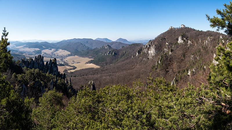 Aj dnes ráno v Žiline mrzlo a tu v Súľovských vrchoch sú ešte niektoré časti chodníkov pokryté snehom. Z Roháčskych vyhliadok sú ako vždy nádherné výhľady a na južných svahoch, vyhriatych slnkom, sa už prebúdza prvá jarná kvetena.