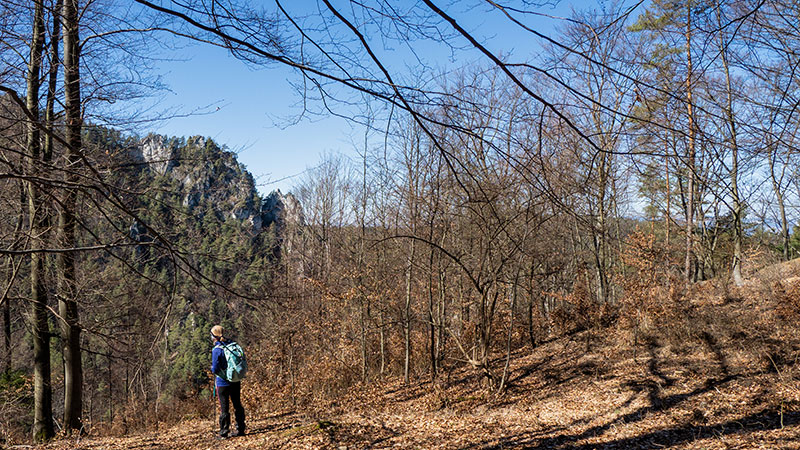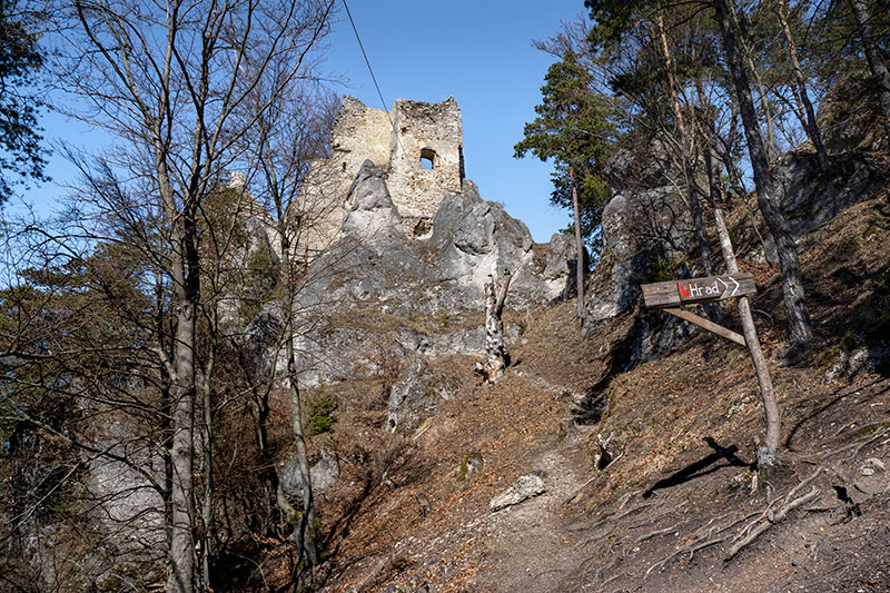 K Hričovskému hradu ideme po turistických značkách z Lietavskej Závadky a pri spiatočnej ceste sa ešte zastavíme na Bielej skale pod Roháčom.