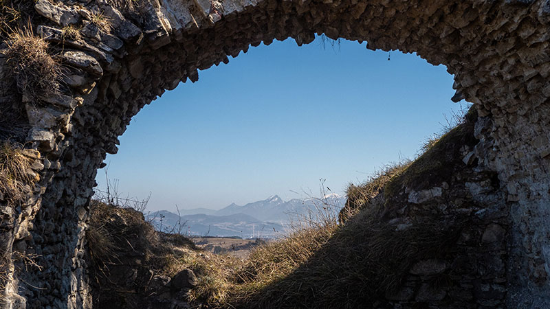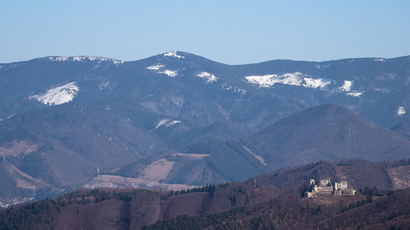 Minčol a hrad Lietava z Bielej skaly pod Roháčom