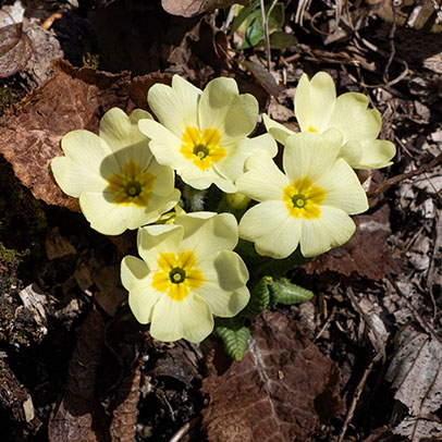 Prvosienka bezbyľová (Primula acaulis) a pečeňovník trojlaločný (Hepatica nobilis)