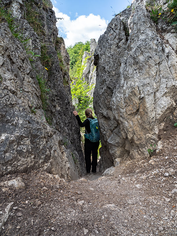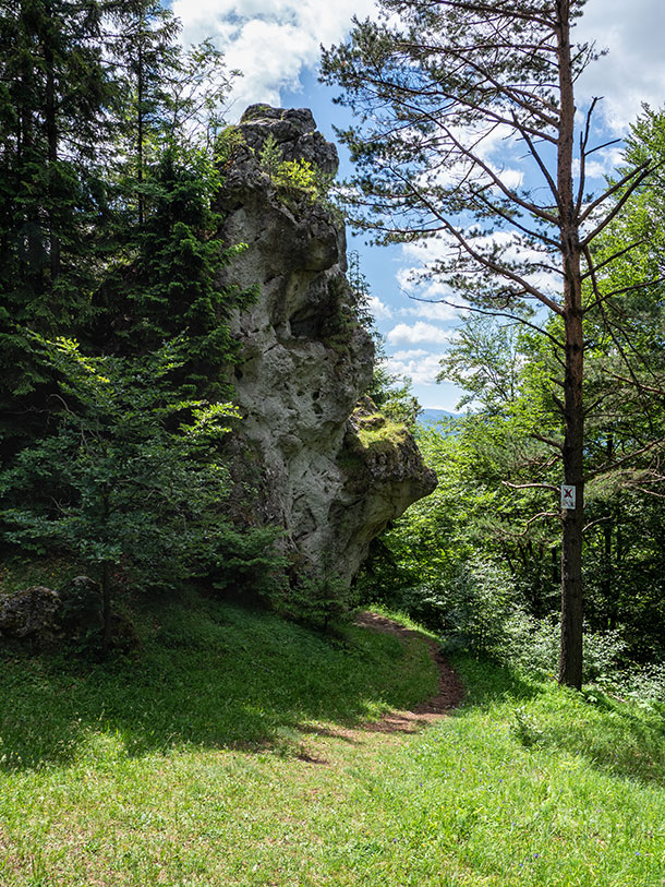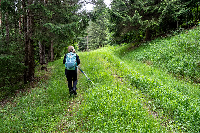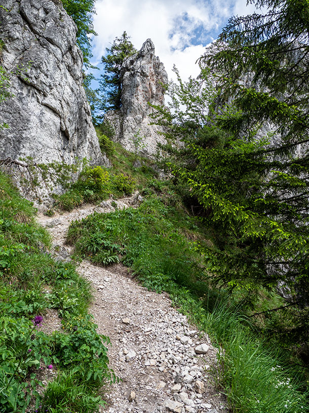 Intenzívne sa tu ťaží drevo. Cesta, ktorou vedie žltá značka je rozjazdená od lesných strojov, preto Škútovou dolinou prejdeme po miestnych chodníčkoch mimo značky.