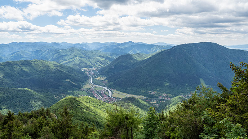 Údolie Váhu so Stankovanmi a Ľubochňou. Vpravo sa dvíha Kopa.