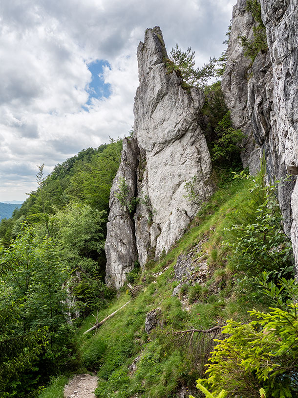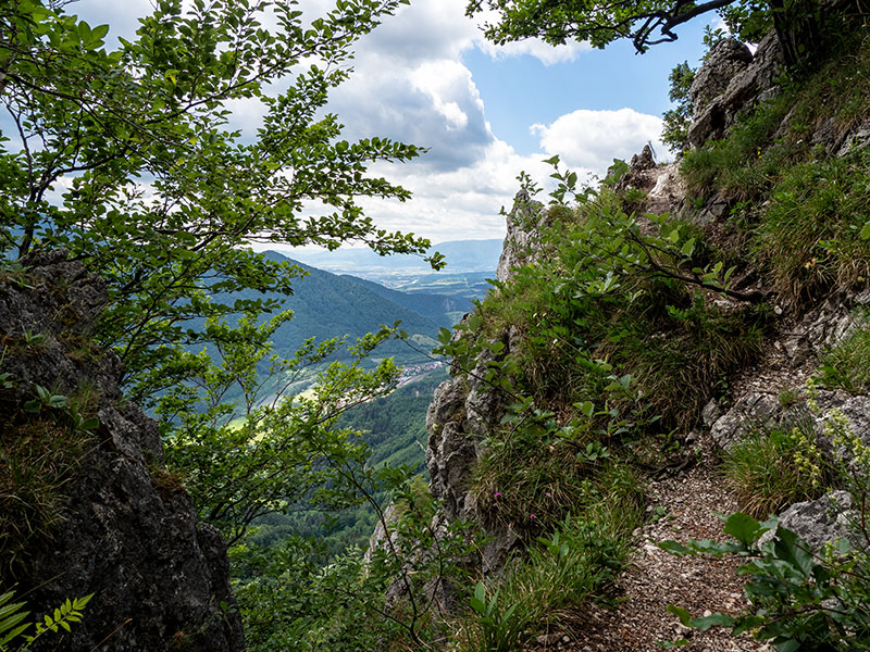 Pod Zadným Šípom, ešte pred strmým zostupom, je niekoľko skalných vyhliadok.