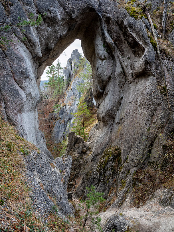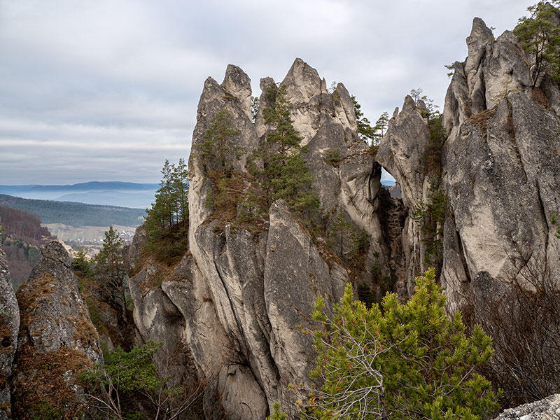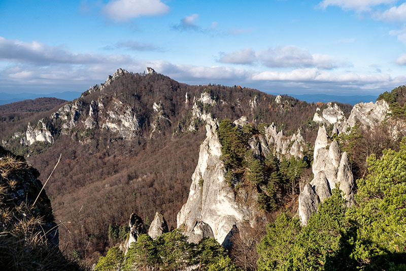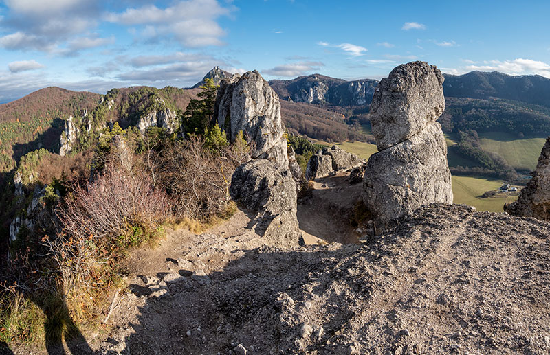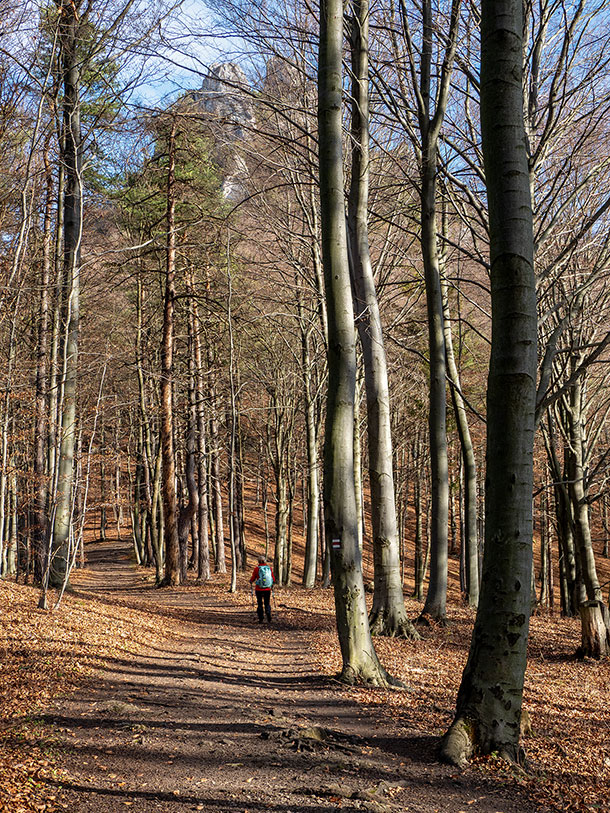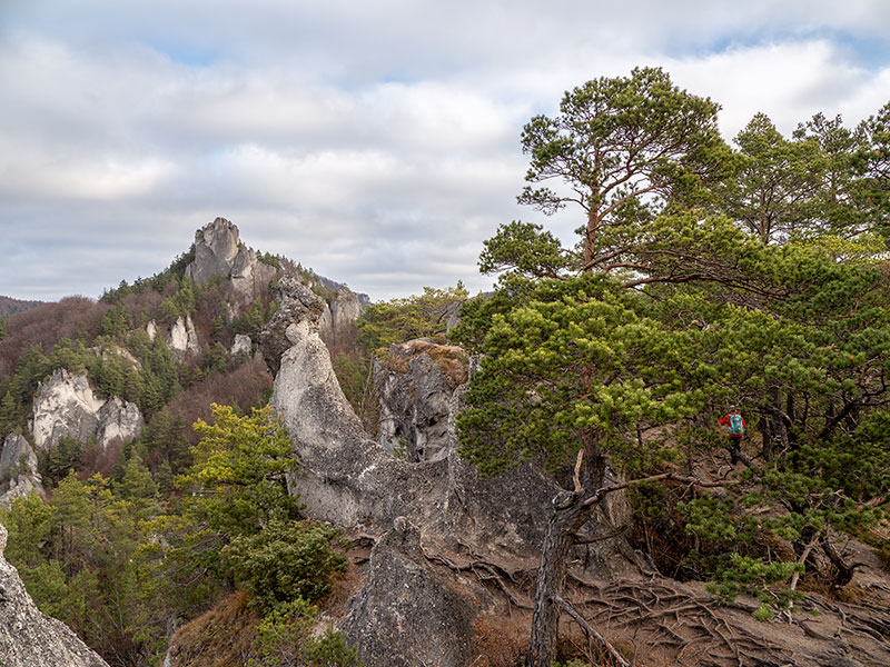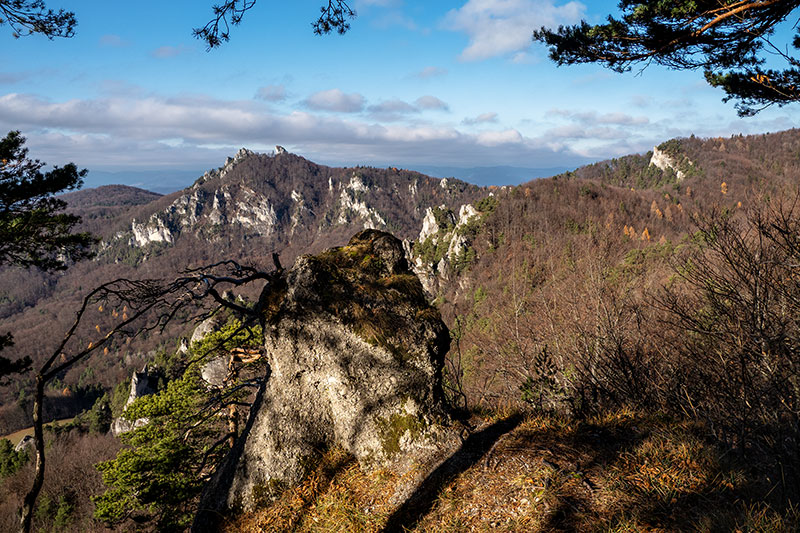 Podľa predpovede je pred nami posledný pekný, slnečný deň tohtoročnej meteorologickej jesene. Rozhodli sme sa prejsť tzv. veľký súľovský okruh, cez Gotickú bránu, hrad a ďalšie pekné partie Súľovských skál, vrátane hrebeňa Kečky až do sedla Patúch, odkiaľ sa vrátime do Súľova. Ráno na parkovisku v Súľove hneď strácame asi 15 min., snažiac sa spojazdniť aspoň jeden z dvoch solárnych automatov na zaplatenie parkovného. Neúspešne. Dúfajúc, že sa nevrátime k autu s papučou alebo pokutou, šliapeme k prvému cieľu.